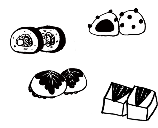お団子、和菓子、巻物、弁当を早朝から毎日お作りし、